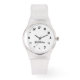 I only have one complaint. I ordered the watch with clear case and strap, and what was sent was white case and strap. I'm going to keep it because 1) it looks very nice in white, and 2) it would take too long to get a replacement made and sent in time for my occasion. Aside from the mix up with the color, the watch does look very good in white. The purple dial is actually sparkly which did not show in the online images. That was a nice surprise. If you like Swatch watches this is very similar to those. It's 33.6mm in diameter, 10.5mm thick, and 40.6mm lug to lug. Stainless steel case back says 3ATM/30m WR, so no swimming or showering or submerging this one. If you like Woodstock, this is a great choice.