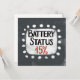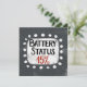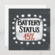 "Battery Status 15%" is a cute text design in grey with black and red text, along with a white accent shape and white textured whimsical dots surrounding it.