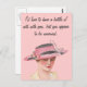 This postcard features a vintage image of a woman in a pink hat, with the text, "I'd love to have a battle of wits with you, but you appear to be unarmed".