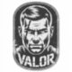 This bold, black-and-white sticker design captures the raw intensity of a battle-hardened commando. Featuring a rugged face with piercing eyes, a scarred eyebrow, and a gritty, textured finish, the illustration exudes resilience and determination. Framed by a cracked military dog tag inscribed with “Valour,” this graphic is set against a transparent background, perfect for a striking, wearable statement piece that celebrates strength and courage.