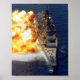 This United States military history photograph shows the battleship USS Iowa (BB-61) demonstrating its full fire power from its 16 inch 50 calibre guns on August 15, 1984.