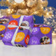Fun holiday words and sentiments Christmas family photos wrapping gift paper in shades of purple, red, orange and white. Customise with three of your own special photos. Uniquely designed by Sarah Trett.