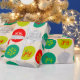 Fun holiday words and sentiments Christmas family photos wrapping gift paper in shades of green, red, natural neutral tones. Customise with three of your own special photos. Uniquely designed by Sarah Trett.
