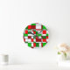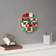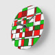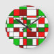 This clock has a Bauhaus-inspired Christmas design in green and red. Hang it by your Christmas tree.
