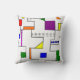 This throw pillow has a Bauhaus design of lines going vertically and horizontally to make a grid with squares, rectangles, triangles, and circles placed around the grid. If you like the design but prefer different colours, message me.