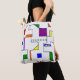 This tote bag has a Bauhaus design of lines going vertically and horizontally to make a grid with squares, rectangles, triangles, and circles placed around the grid. If you like the design but prefer different colours, message me.