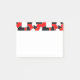 This Post-It notepad has a Bauhaus design of triangles, circles, rectangles, and pentagons in black and white on a field of red.