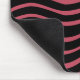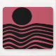 This mouse pad has Bauhaus design of wavy lines and circles in black on a field of deep pink.