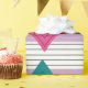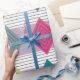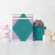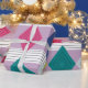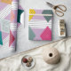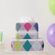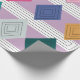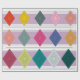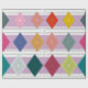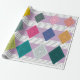 This wrapping paper has a Bauhaus design of diamonds on gray strips with a design meant to look like quilting.