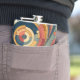 The flask itself is fine. It’s a cheap flask, obviously bought in bulk, however am prepared to overlook that. Given that it is a personalized item, I would have liked to have seen gift boxing instead of the generic packaging. Terrible printing, and/or quality. It’s a cheap, tacky vinyl. It is not cut straight and is also applied in a way that it is overhanging the bottom, causing the glue to catch on items and it will eventually roll and tear, damaging the wrap.