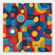 This Bauhaus-inspired geometric abstract design brings a modern twist to the art movement with it's simple geometry shapes and forms with circles, squares and rectangles in a dark palette of saturated primary colours. The dynamic composition captures the essence of the modernist era.