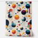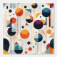 This Bauhaus-inspired geometric abstract design brings a modern twist to the art movement with it's simple geometry shapes including circles, repeating lines, squares and rectangles in a dark palette of saturated colours. The dynamic composition captures the essence of the modernist era.