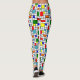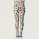 These leggings have a Bauhaus design of a grid with squares and rectangles in red, green, blue, orange, light blue, yellow, and red.