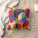 This throw pillow has a Bauhaus design of overlapping hexagons of many colors.