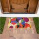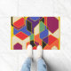 This doormat has a Bauhaus design of overlapping hexagons of many colors.