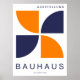A vibrant and bold Bauhaus Ausstellung art print featuring four dynamic quarter-circle shapes in vivid orange and deep navy on a soft cream background. Inspired by the 1923 Weimar exhibition, this high-contrast geometric composition delivers energetic modernist flair to any interior space. Bold colour-block art is one of the most-searched interior design trends across Pinterest in Australia and the US, making this orange and navy Bauhaus print perfect for living rooms, home offices, and statement gallery walls.