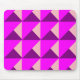 This mouse pad has a Bauhaus design of overlapping triangles in purple, magenta, and pink.