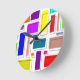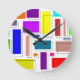 This clock has a Bauhaus design of rectangles in many colors with their black outlines offset.