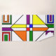 This towel set has a Bauhaus design of lines, triangles, diamonds, and squares making a stained glass look in primary and secondary colours.