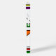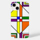 This phone case has a Bauhaus design of lines, triangles, diamonds, and squares making a stained glass look in primary and secondary colours.