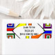 These return address labels have a Bauhaus design of lines, triangles, diamonds, and squares making a stained glass look in primary and secondary colours.
