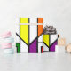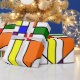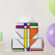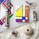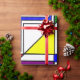 This wrapping paper has a Bauhaus design of lines, triangles, diamonds, and squares making a stained glass look in primary and secondary colours.