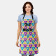 This apron has a Bauhaus design of repeating triangles in gold, turquoise, teal, purple, and light gold. If you like the design but prefer different colours, message me.