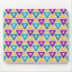 This mouse pad has a Bauhaus design of repeating triangles in gold, turquoise, teal, purple, and light gold. If you like the design but prefer different colours, message me.