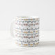 This mug has a Bauhaus design of triangles made from continuous black lines with striped circles placed throughout. If you like the design but prefer different colours, message me.