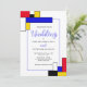 An extravagant and alternative wedding invitation for an extravagant couple, inspired of the art of Piet Mondrian, in the primary colours red, yellow and blue as well as the non-colours black and white, as they appear in his works from around 1921.