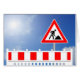 Baustelle, Baustellenabsperrung und Baustellenschild