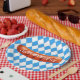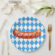 Bavarian, sausage, geometric pattern paper plates, for Oktoberfest. Germany.