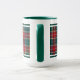 Coffee mug with the Clan Baxter tartan. Red and forest green Scottish plaid pattern from 1856, with light blue, yellow and white accents.