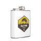 The flask itself is fine. It’s a cheap flask, obviously bought in bulk, however am prepared to overlook that. Given that it is a personalized item, I would have liked to have seen gift boxing instead of the generic packaging. Terrible printing, and/or quality. It’s a cheap, tacky vinyl. It is not cut straight and is also applied in a way that it is overhanging the bottom, causing the glue to catch on items and it will eventually roll and tear, damaging the wrap.