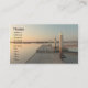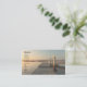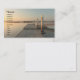 Your contact information displays against a landscape showing an empty kayak dock lit by the rising sun. Customise to change the shape or rearrange the text.