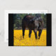 A gorgeous photo of a large bay horse in a big field of yellow flowers. This beautiful equine is bending down to inspect these yellow black eyes susans. His face is gentle and looks thoughtful and kind. The colour and lighting is fantastic and the dark brown bay colours of this horse with the sea of bright yellow flowers really makes this image pop.
