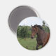 Bay horse in a field on a magnet.