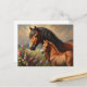 Bay Mare with a Foal Wildflowers Painting Postcard