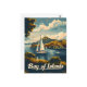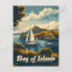 A captivating vintage depiction of the Bay of Islands, New Zealand, renowned for its stunning coastal scenery and historic significance. The design showcases the bay's pristine turquoise waters dotted with lush green islands, framed by rugged coastlines and secluded beaches. Rendered in a nostalgic style, the artwork captures the serene beauty and adventurous spirit of this iconic New Zealand destination.