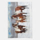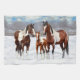 Bay Pinto Paint Horses In Winter Snow Tea Towel
