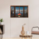 The artwork creates the illusion of having a window on your wall. The illusion gives the feeling of looking out at a calm lake To make this poster even more interesting I added a pot of flowers on the sill. A Very unique and original poster!