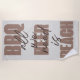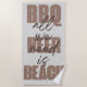 Lettering design for three things we need: barbecue, beer, and the beach. In brown lettering on a sandy beige background.