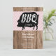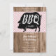 Fun summer birthday party invitation suitable for men or women. With a printed image of a black pig on a pink plaid image on a wood effect background. This example is for a BBQ party, but can be used for any event. All text on this invite is fully customizable, if you would like help to customize, or would like matching products please contact me through my store and i will be very happy to help you.