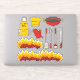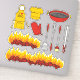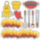 Barbecue icon set contour stickers. Tools, grill and flaming coals.