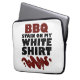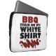 The sleeve is made of nice feeling material and seems very durable. I'm not sure how easy it'll be to clean, but the construction seems sound and the fabric is quick thick. I also like the double zipper. The printing is lovely and appears durable. The white on black contrast is nice, and the design very elegant.