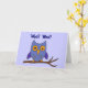 Cute funny owl birthday card says Who? Who? is having a birthday? You. Happy Birthday.