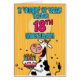 "I 'herd' it was your 18th birthday!" fun b-day cow holding a birthday cake greeting card.