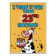 "I 'herd' it was your 23rd birthday!" fun b-day cow holding a birthday cake greeting card.