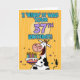 "I 'herd' it was your 37th birthday!" fun b-day cow holding a birthday cake greeting card.