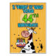 "I 'herd' it was your 44th birthday!" fun b-day cow holding a birthday cake greeting card.